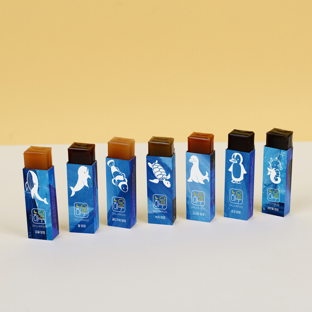 샘플 구성 : 생분해 접시 2종 각1개 + 해초 줄노트 1권 + 달하루 양갱 낱개 2개(랜덤)