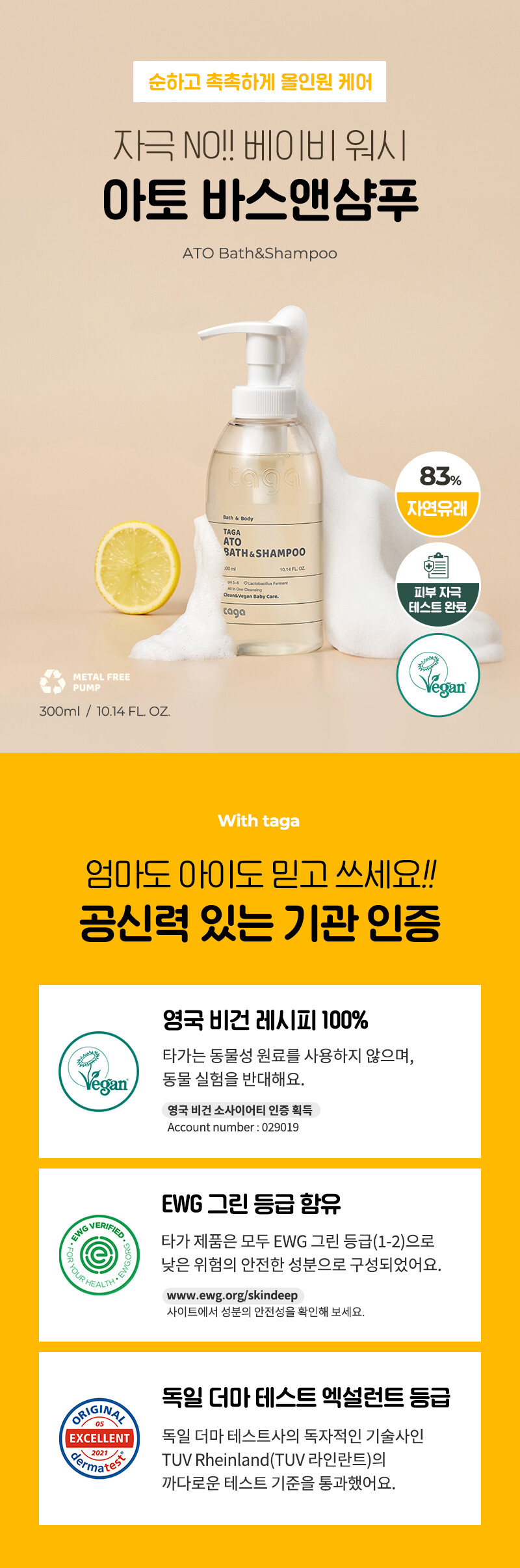 타가 비건 아토 바스앤샴푸 300ml, 300ml+300ml