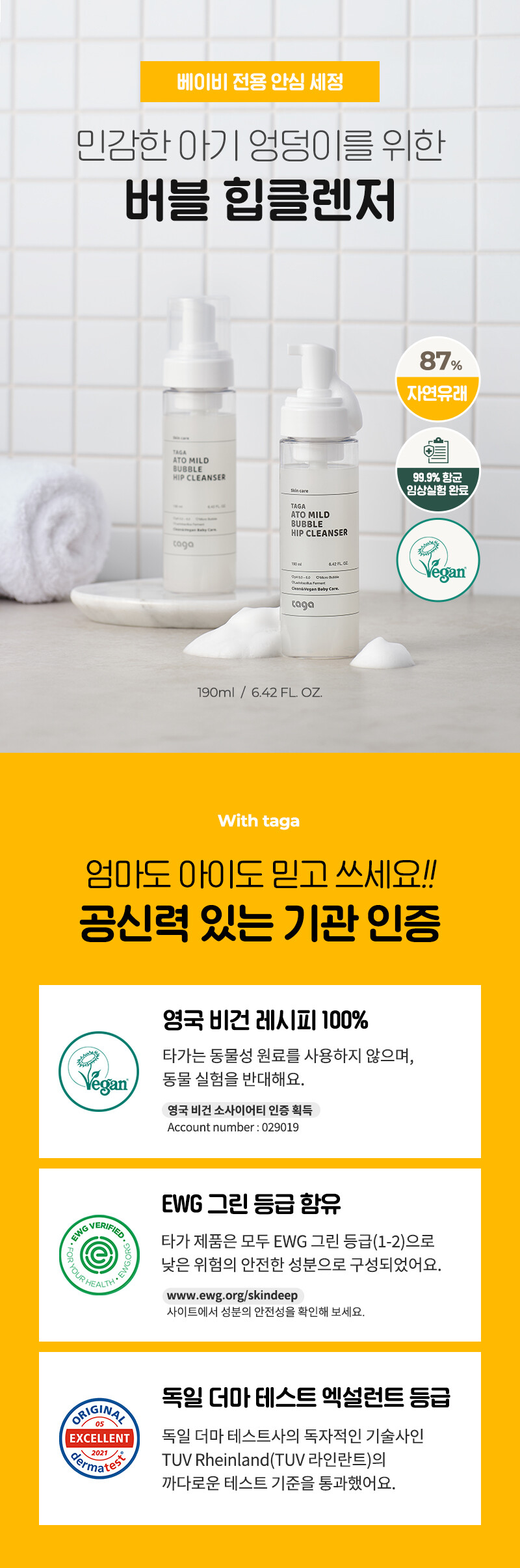 타가 비건 아토 마일드 버블 힙클렌저 190ml, 190ml + 190ml