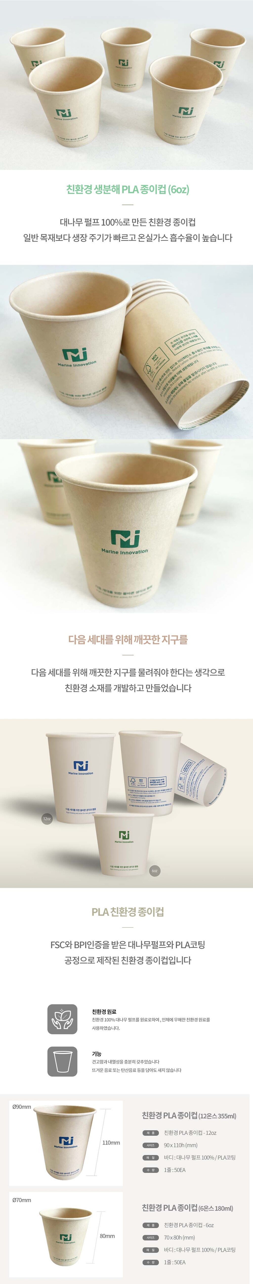 [자누담]친환경 생분해 PLA 종이컵(6온스 180ml) (100개)