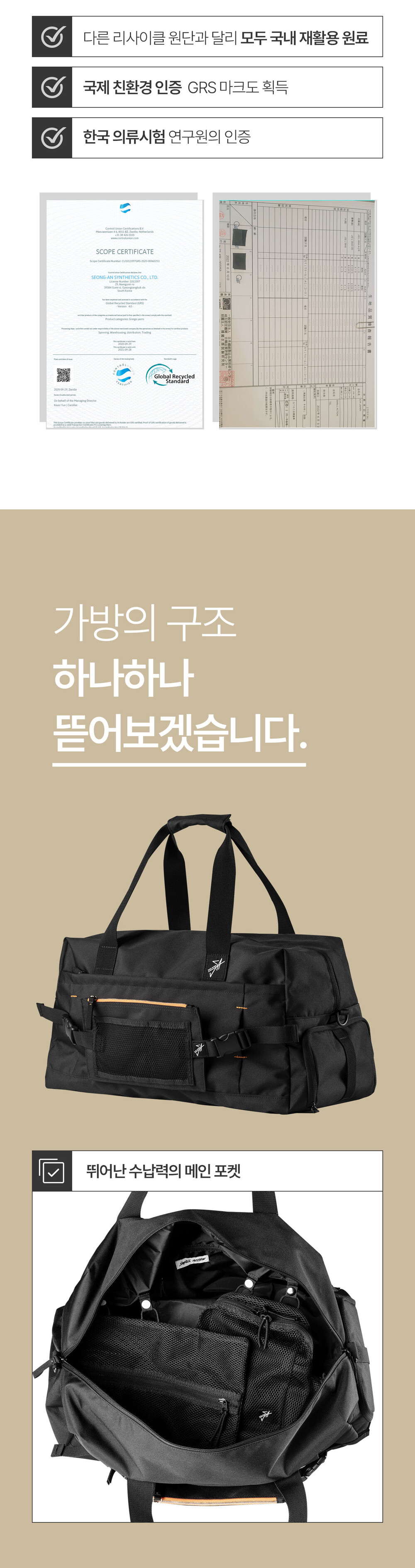 스몰액션 폐그물 리사이클 보스톤백